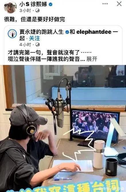 小S转发了贾永婕的动态,并配文:很难,但还是要好好做完。